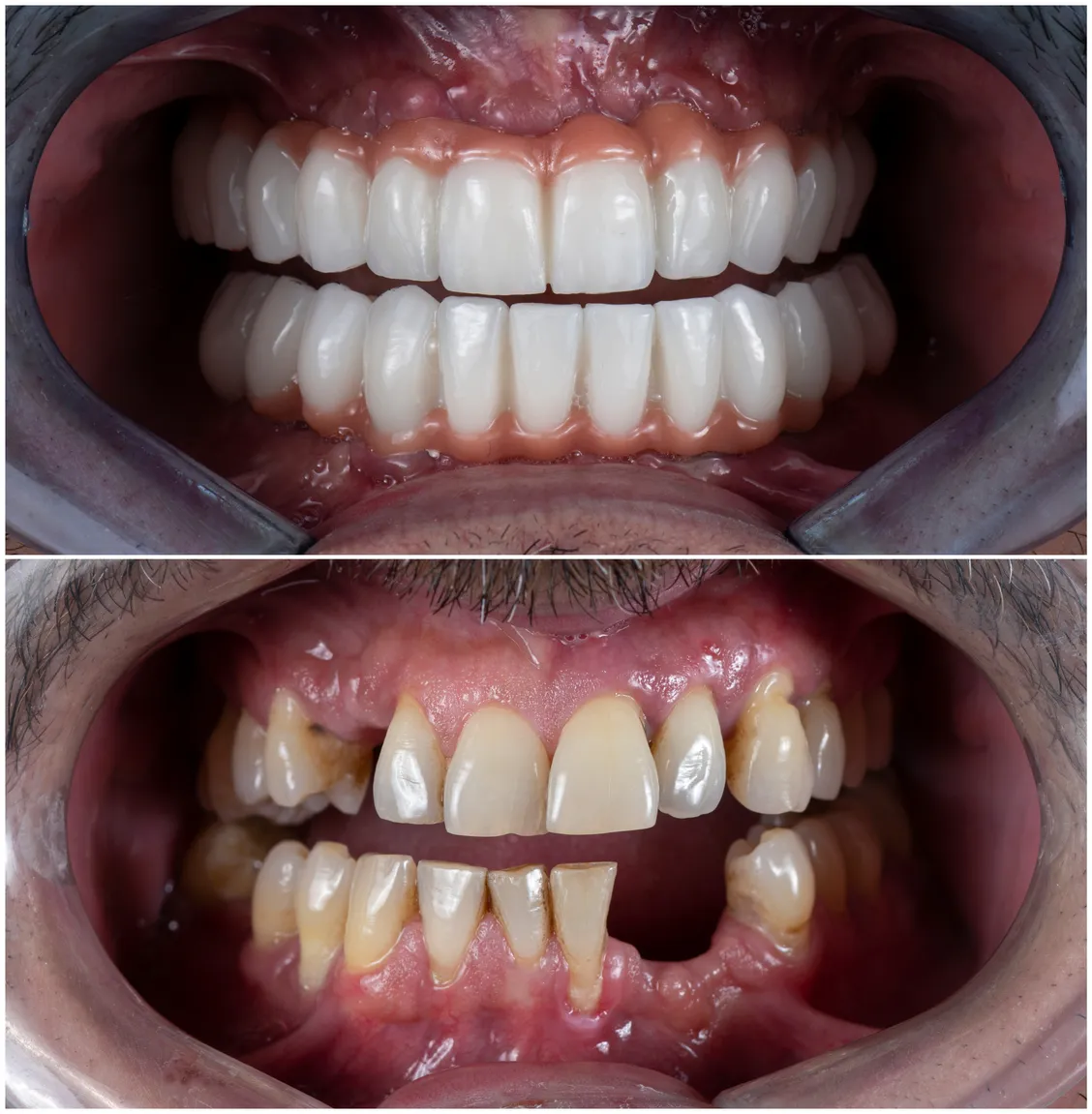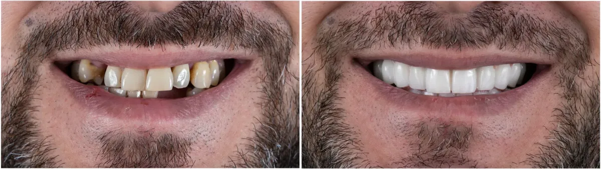 Full mouth dental implants replace all your missing or failing teeth with a new, fixed set of teeth anchored to dental implants in your jaw. Instead of placing an implant for every tooth, we strategically place a small number of titanium implants (usually 4–6 per arch) and attach a full bridge of custom-made teeth to them.